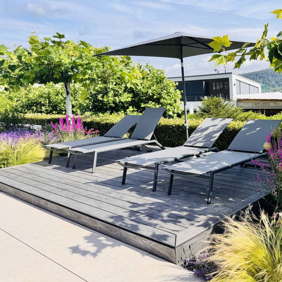 Die Sonne lacht, der See glitzert, die Haut kribbelt – willkommen auf dem großzügigen Sonnendeck direkt am Pool.